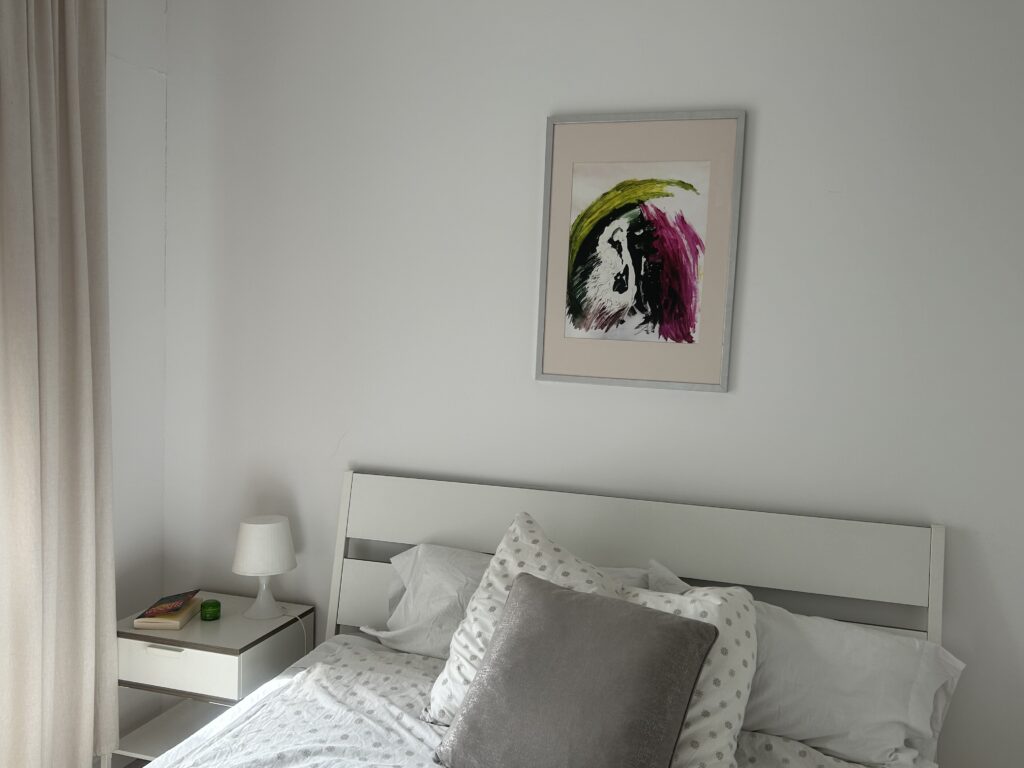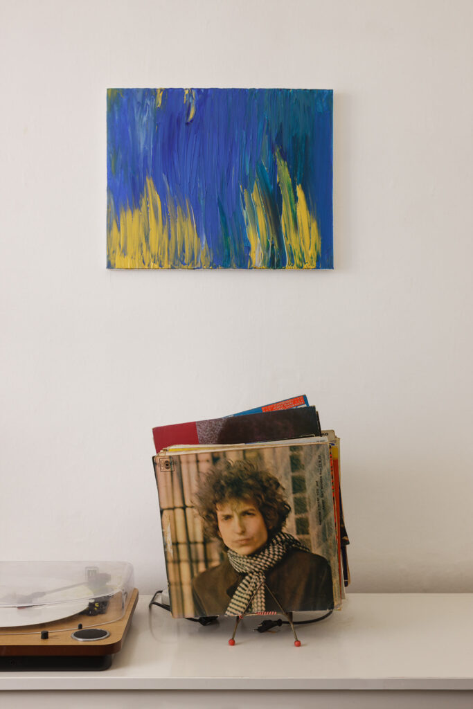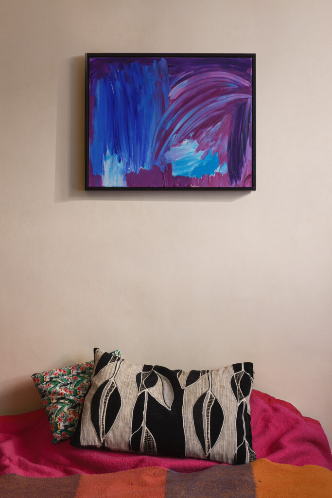 I love the sweet, peaceful energy this painting brings to the room where I sleep, and I love that it’s there when I wake, a blessing of colour just over my head.