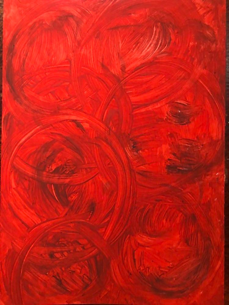 The result is a painting that speaks to me in a way I’ve never experienced before. My Comet always seems to give me exactly what I need in the moment—peace, invigoration, or insight—often accompanied by a feeling of transcending the here and now. Sometimes I see in her a beautiful eye that gleams back at me with wonder and love. Sometimes she’s a portal to other dimensions. Sometimes she’s a flaming comet, rocketing me into the great beyond. Kim Noriega